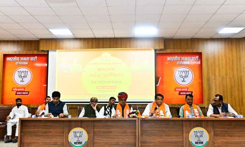 दैनिक राजस्थान समाचार संवाददाता तरनदीप सिंह। भारतीय जनता पार्टी राजस्थान द्वारा SIR (स्पेशल इंटेंसिव रिवीजन यानी विशेष गहन पुनरीक्षण) की कार्यशाला का आयोजन जयपुर स्थित भारतीय जनता पार्टी के प्रदेश कार्यलय मे आयोजित की गई ! इस कार्यशाल मे कार्यकर्ताओं से मतदाता सूची का गहन प्रशिक्षण व पुर्ननिरिक्षण में अपना सहयोग देने क्षेत्र में नए मतदाताओं का नाम दर्ज कराने तथा वह चुनाव आयोग के BLO का सहयोग करने का आह्वान किया,व प्रत्येक बूथ पर सजक व जागरुक रहते हुए 2002 की मतदाता सूची में 2025 की मतदाता सूची का मिलान कर जो नाम नहीं है पुनः जोड़ने और जो लोग नहीं रहते हैं उनकी जानकारी उपलब्ध करा कर हटाने में नई फोटो उपलब्ध कराने तो निवेदन करते हुए चुनाव आयोग के निर्देशों को मानते हुए BLO के कार्य में सहयोग करने का निर्देश देते हुए मतदाता सूची तैयार करवाने के लिए कहा।