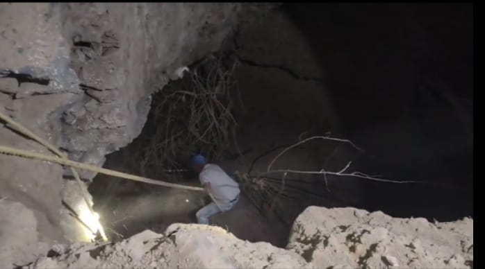 मनीष तिवारी ने बताया कि पिछले ०5 दिनों से कुएं में कुत्ता गिर गया! कुआं चारों और से क्षतिग्रस्त है कुछ समय पहले उसे कुएं को मिट्टी से भरने की कोशिश की गई परंतु वह अधूरा छोड़ दिया और अभी भी उसके आसपास कोई भी हादसा हो सकता है। कुए के पास सड़क मार्ग भी है। जिसके चलते कोई बड़ा हादसा हो सकता है। इस और प्रशासन को शीघ्र ध्यान देना चाहिए ताकि दुर्घटना से बचा जा सकता है। इस अवसर पर मनीष तिवाडी, आरडी मीना,शिवरतन जांगिड़, दिनेश,रामल्या पटेल, बाबूलाल, हाकिम सिंह,मनोज एवं गांव के गणमान्य लोग व नवयुवक मौजूद रहे। काफी मशक्कत के बाद में देर रात ०5 दिन से तड़प रहे कुत्ते को सकुशल जिंदा बाहर निकाला।