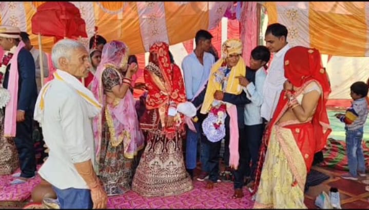 दैनिक राजस्थान समाचार नागपाल शर्मा माचाड़ी। माचाडी़- प्राचीन काल में अलवर जिले की राजधानी रहे माचाड़ी कस्बे के नजदीक नयागांव में अलवर-करौली नेशनल हाईवे सड़क मार्ग स्थित नयागांव बस स्टैंड के पास शनिवार को श्री कृष्णा यादव सेवा समिति के तत्वावधान में अहीर समाज का आठवां सामुहिक विवाह सम्मेलन संपन्न हुआ। आयोजित विवाह सम्मेलन में 58जोड़े परिणय सूत्र में बंधे। करीब बीस बीघा परिक्षेत्र में सजी जनकपुरी में सुबह से ही वर वधु पक्ष के लोगों की चहल-पहल शुरू हो गई। आचार्य सत्यनारायण शर्मा ने वैदिक मंत्रोंच्चारों के साथ गणेश स्थापना कराई तत्पश्चात गणेश वंदना से विवाह सम्मेलन की शुरुआत की गई। सम्मेलन में राज्य के जयपुर,दौसा,भरतपुर,अलवर, सवाईमाधोपुर,करोली,भरतपुर, हरियाणा,दिल्ली,उत्तर प्रदेश सहित आसाम व बिहार के वधु पक्षों ने सिरकत की। विवाह स्थल पर अलग-अलग तोरणद्वार सजाएं गए। सम्मेलन में उत्साह से लोगों ने भाग लिया। महिलाएं अपने अपने केम्पों में वैवाहिक मांगलिक रश्म व गीतों में मशगूल रही। साथ ही वधुओं ने गौरा पूजन की रश्म निभाई। विवाह स्थल पर 58मंडप सहित आशिर्वाद गृह,भोजनशाला,उत्सव पार्क,अतिथि सम्मान मंच सजाया गया। 58 घोड़ियों पर सवार दुल्हों के साथ बराती तोरणद्वार पंहुची जहां तोरण की रश्म अदाकर वधु के साथ मंडप के नीचे पहुंचे। जहां मुख्य आचार्य सत्यनारायण शर्मा द्वारा वैदिक मंत्रोच्चारों के साथ 58 विप्र बंधुओं ने पाणिग्रहण संस्कार कराया। इस अवसर पर भारत सरकार केंद्रीय मंत्री भूपेंद्र यादव के प्रतिनिधि अलवर सरस डेयरी अध्यक्ष नितिन सागवान,किशनगढ़ बांस के पूर्व विधायक रामहेत यादव, बहरोड़ विधायक जसवंत यादव तथा अन्य सम्मानित गणमान्य व्यक्तियों के साथ ग्राम वासी मौजूद रहे।