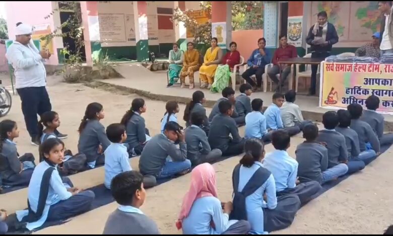 दैनिक राजस्थान समाचार नागपाल शर्मा माचाड़ी(अलवर):-राजगढ़- राजकीय उच्च प्राथमिक विद्यालय माचाड़ी राजगढ़ सड़क मार्ग पर डाबला मेव में गुरुवार को सर्व समाज हैल्प टीम के सदस्य स्थानीय भामाशाह कोठारी बास निवासी जगराम कोठ्यारी डाबला की ओर से सर्दी को देखते हुए छात्र-छात्राओं को (जर्सी-टोपी) ऊनी वस्त्र वितरित किए गए। सर्व समाज हैल्प टीम के कार्यवाहक उपाध्यक्ष सैतान भाकरी हरिकिशन बाढ ने बताया कि विद्यालय में 76 बच्चे अध्ययनरत है तथा ०5 बच्चे पूर्व प्राथमिक स्तर के है। इस दौरान सभी 81 बच्चों को सर्व समाज हैल्प टीम सदस्य जगराम डाबला (भामाशाह) की ओर से ऊनी वस्त्र वितरित किए गए। जिसके लिए विद्यालय प्रधानाध्यापक कल्लूराम मीना एवं विद्यालय प्रबन्धन समिति ने भामाशाह का आभार व्यक्त किया। इस दौरान सर्व समाज हैल्प टीम के कार्यवाहक अध्यक्ष महेन्द्र मीना, जगराम मीना,धर्मू डाबला, रामकेश रतनपुरा,सुनील भाकरी, प्रमोद सैनी सकट,महेंद्र कसाना, सैतान भाकरी,हरिकिशन बाढ व कल्लूराम प्रधानाध्यापक व विद्यालय प्रबंधन एवं छात्र छात्राएं मौजूद रहे!