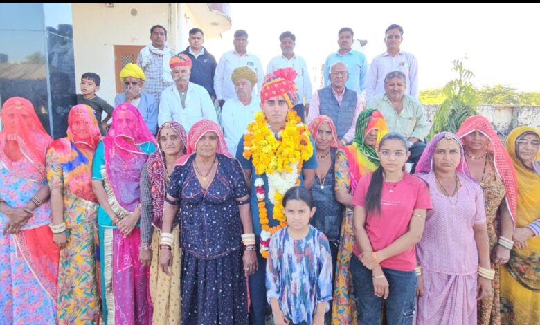 दैनिक राजस्थान समाचार (पंकज बाफना)थांवला के नजदीकी ग्राम सुदवाड़ मे आज खुशी का माहौल देखा गया।सुदवाड़ मे किसान के घर जन्मा अंकित बिसु ने अपनी मेहनत और परिजनों की प्रेरणा से मात्र 17 वर्ष 6 महीने की उम्र मे एयर फ़ोर्स मे फ्लाईंग ऑफिसर के पद पर सफलता हासिल कर पुरे क्षेत्र का नाम रोशन किया है।जैसे ही परिणाम आया कस्बे सहित पुरे क्षेत्र मे खुशी की लहर छा गईं।बधाई और शुभकामनायें देने वालो का घर पर तान्ता लग गया।परिजनों व ग्रामवासियो ने पुष्प माला व साफा पहनाकर बधाई व शुभकामनायें देते हुए मुंह भी मीठा करवाया।सभी ने उज्ववल भविष्य की कामना की है।इस मोके पर लक्ष्मण राम, मोहनराम,सुगनाराम,मूलाराम, रामलाल रूपाराम धर्माराम बिसु, मुकेश पुनिया कोड,धर्माराम तिलोक राम चोयल चंपालाल लाटा मुकेश सेन, पारकी देवी, ग्यारसी देवी,शारदा,नरु, सरोज, मंजू, भंवरी, निशा सहित ग्रामवासी व परिजन मौजूद रहे।
