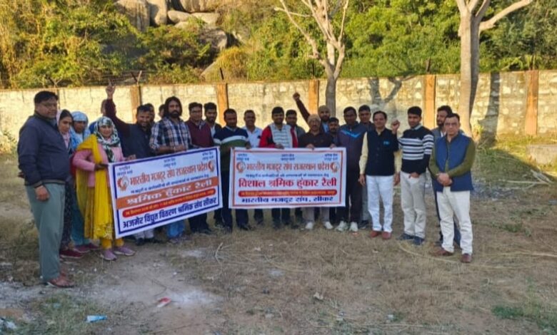 दैनिक राजस्थान समाचार न्यूज संवाददाता प्रदीप कुमार शर्मा गढटकनेत -अजीतगढ़ गुरुवार 18दिसम्बर को एग्रीबायोटेक ई• लि•सहित अजीतगढ़ कस्बे एवं विद्युत विभाग कार्यालय, अजीतगढ़ में आगामी प्रदेश की 26दिसम्बर,2025को जयपुर में प्रस्तावित मजदूर हुंकार रैली का पोस्टर विमोचन हुआ। भारतीय मजदूर संघ के जिला संगठन मंत्री गोपाल मीणा से मिली जानकारी के अनुसार प्रदेश की भजनलाल शर्मा सरकार को कुम्भकर्णी नींद से जगाने के लिए इस विशाल रैली में अधिक से अधिक संख्या में पंहुचने का लोगों से आव्हान किया गया।इस अवसर पर भारतीय मजदूर संघ सीकर जिलाध्यक्ष राजकुमार भास्कर,विद्युत श्रमिक संघ जिलाध्यक्ष संजय पचार, मजदूर संघ जिला मंत्री अशोक कुमार, वरिष्ठ उपाध्यक्ष रिछपाल सिंह बेनीवाल,एग्रीबायोटेक मजदूर संघ के पूर्व अध्यक्ष बहादुर चौधरी, सचिव दिनेश कुमार सैनी, सहसचिव मूलसिंह शेखावत,प्रचार मंत्री रामस्वरूप यादव,मनोज गुर्जर, मुकेश यादव, मुकेश गुर्जर, मनोज कुमार सैन सहित काफी संख्या में श्रमिक एवं मजदूर शामिल हुए।इस अवसर पर तमाम श्रमिकों एवं मजदूरों ने हुंकार भरते हुए भारत माता की जय, वन्दे मातरम् व भारतीय मजदूर संघ अमर रहे के नारों के साथ मजदूर हितों के लिए आगामी 26दिसम्बर को जयपुर पंहुचने व सरकार को कुम्भकर्णी नींद से जगाने के अधिक से अधिक संख्या में पंहुचने का निवेदन किया जिससे समय रहते भजनलाल शर्मा सरकार जाग जाए।