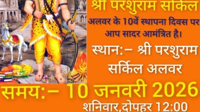 दैनिक राजस्थान समाचार नागपाल शर्मा अलवर। अलवर श्री परशुराम सर्किल अलवर का दसवां स्थापना दिवस श्रद्धा एवं भक्ति भाव के…